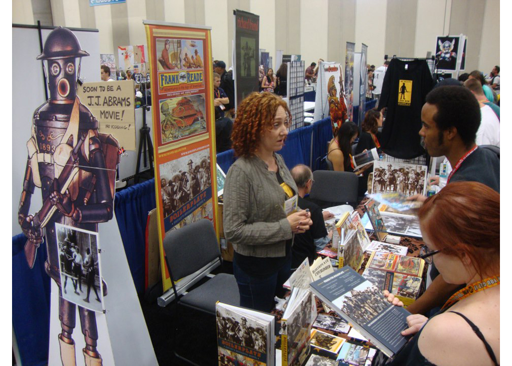The artist alley is set up into lanes of tables, each 8’ with table drapes supplied. Many exhibitors use standees, roll-up banners, and display stands to diversify their set-up and increase the usability of the available space.