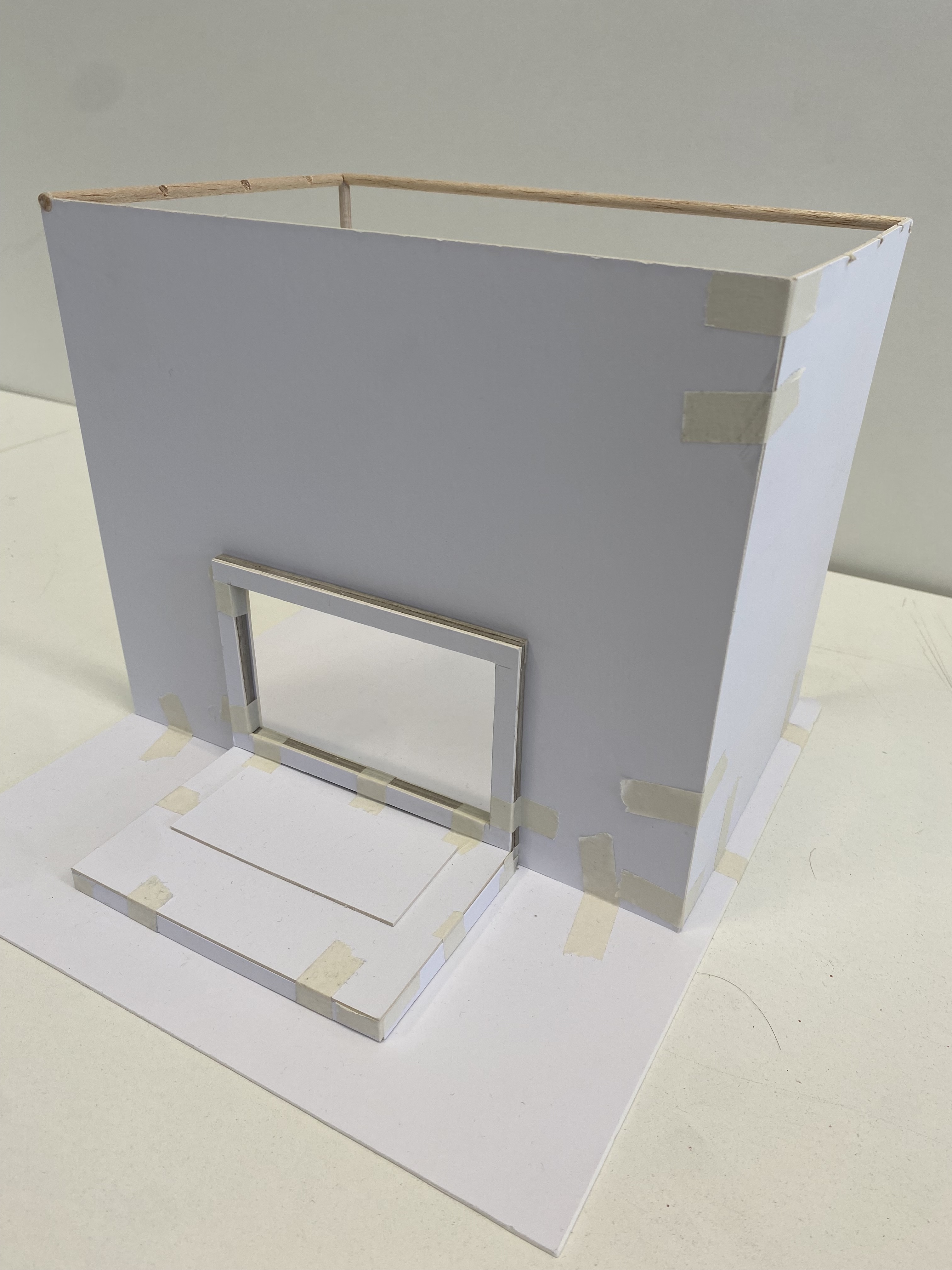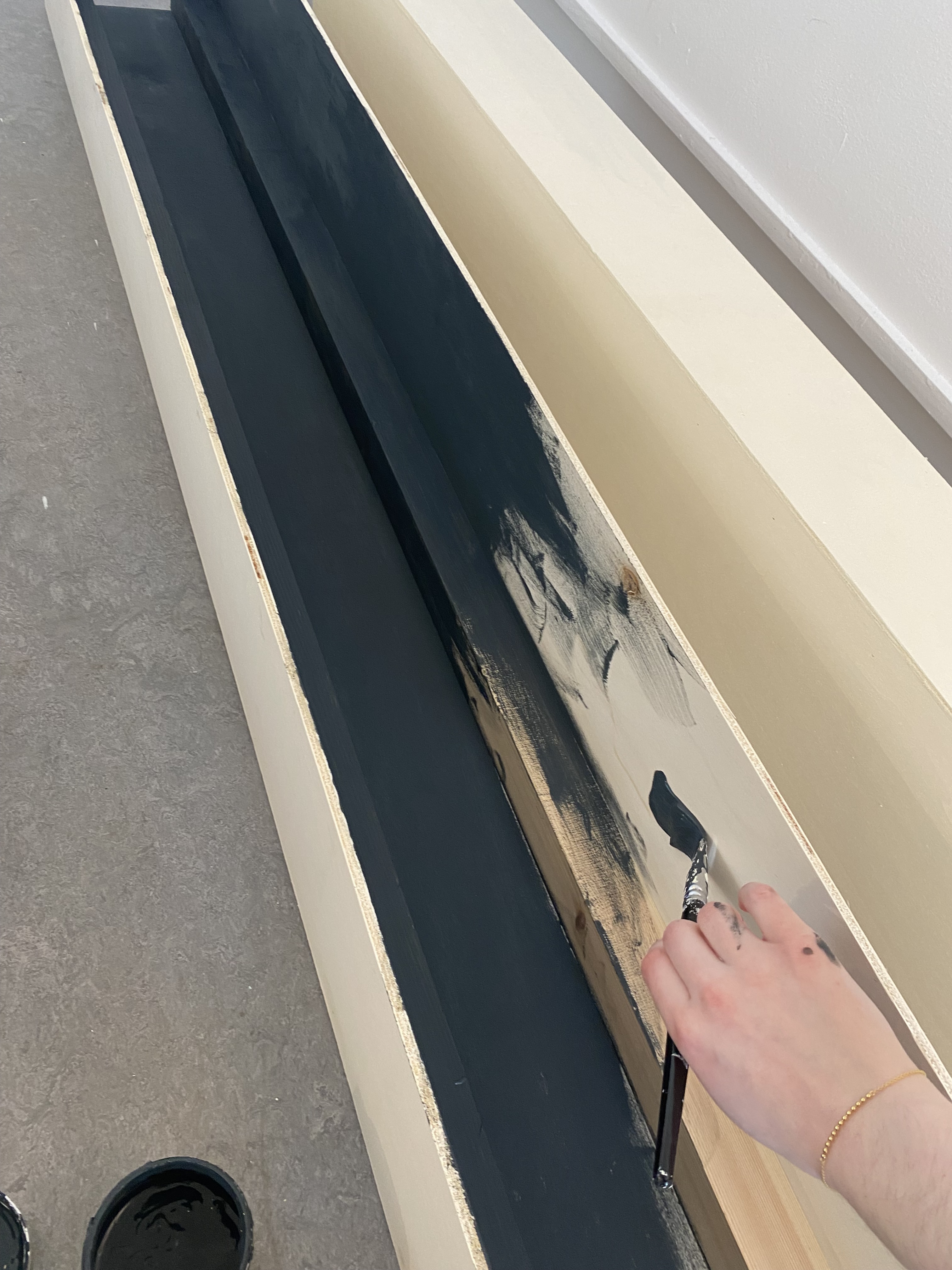 [fabrication sessions working to assemble the frame] [painting the inside and outside of the frame] [adding black paper inside to hide the structural beams]