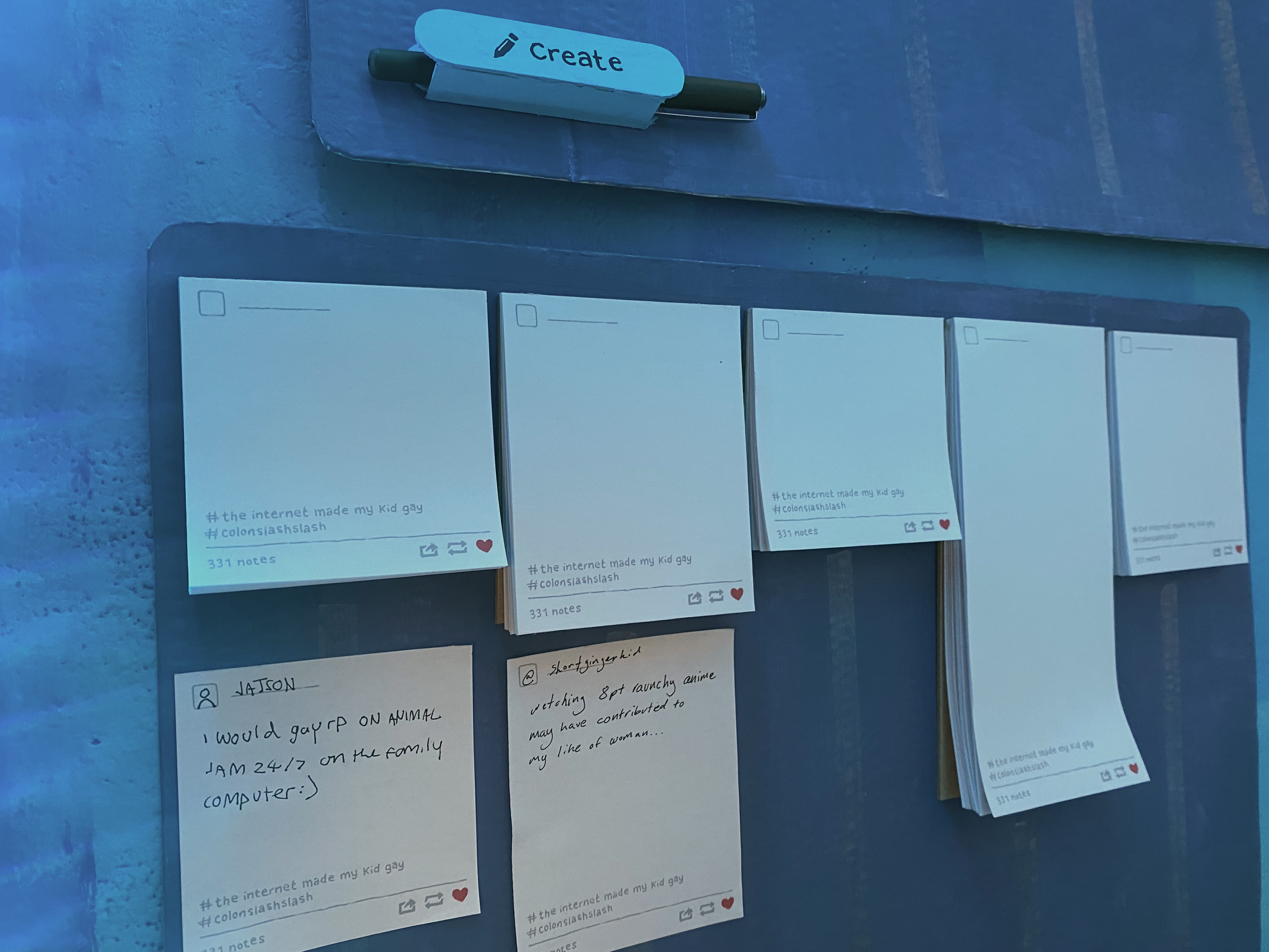 [creating tumblr post sticky notes for my interactive tumblr boards] [collective’s social media profiles I presented] [pen holder I made for interactive board]