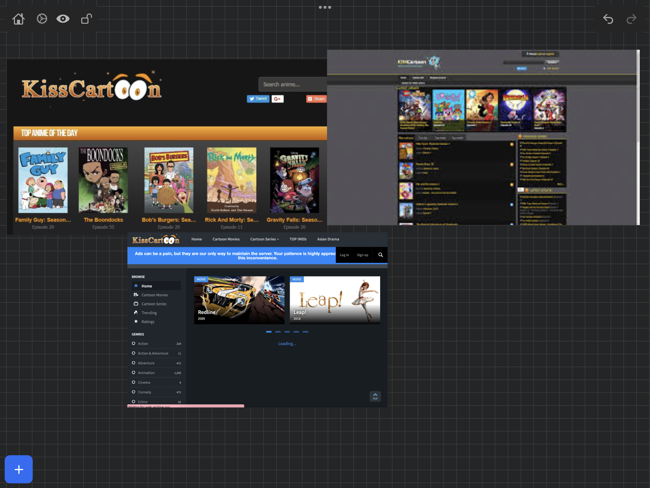 [my model for the initial structural design] [reference images of 2010s website interfaces I collected using The Wayback Machine]